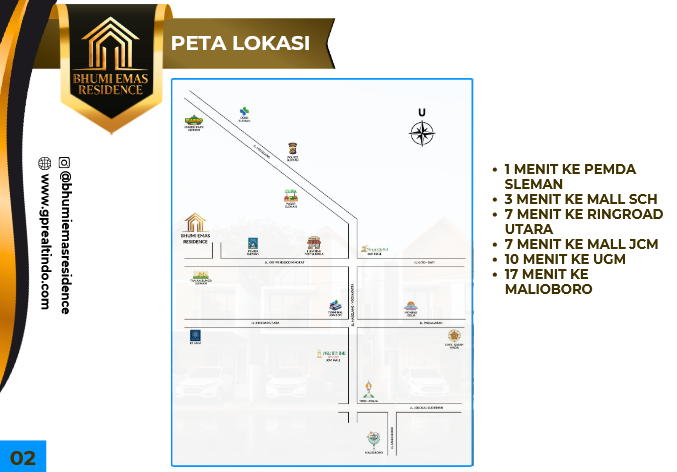1 menit ke PEMDA Sleman • 3 menit ke Mall SCH • 10 menit ke UGM • 17 menit ke Malioboro